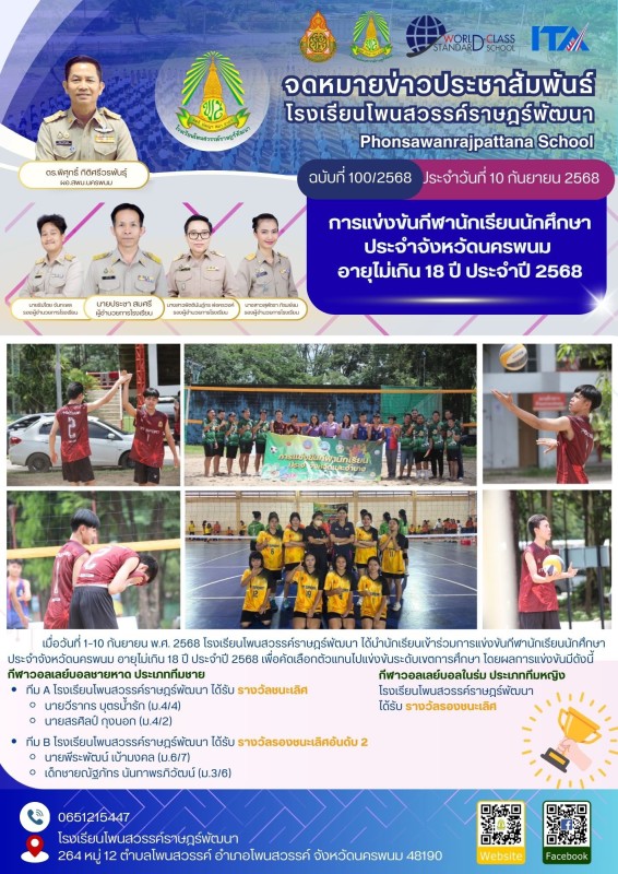 นที่ 1–10 กันยายน พ.ศ. 2568 ผลการแข่งขันกีฬานักเรียนนักศึกษาประจำจังหวัดนครพนม อายุไม่เกิน 18 ปี ประจำปี 2568