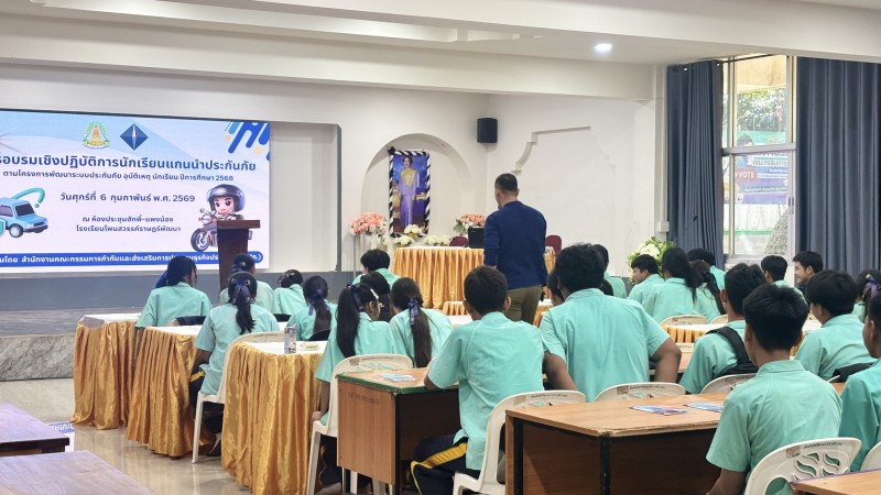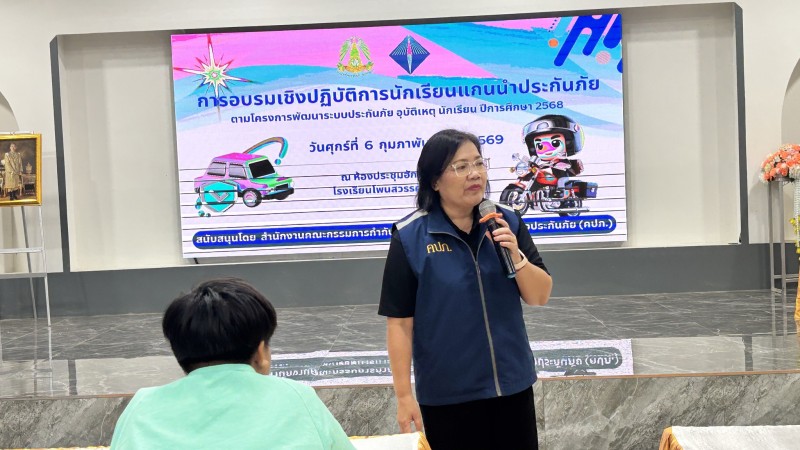 วันที่ 6 กุมภาพันธ์ 2569 การอบรมเชิงปฏิบัติการนักเรียนแกนนำประกันภัย ประจำปีการศึกษา 2568 ตามโครงการพัฒนาระบบประกันภัยอุบัติเหตุนักเรียน
