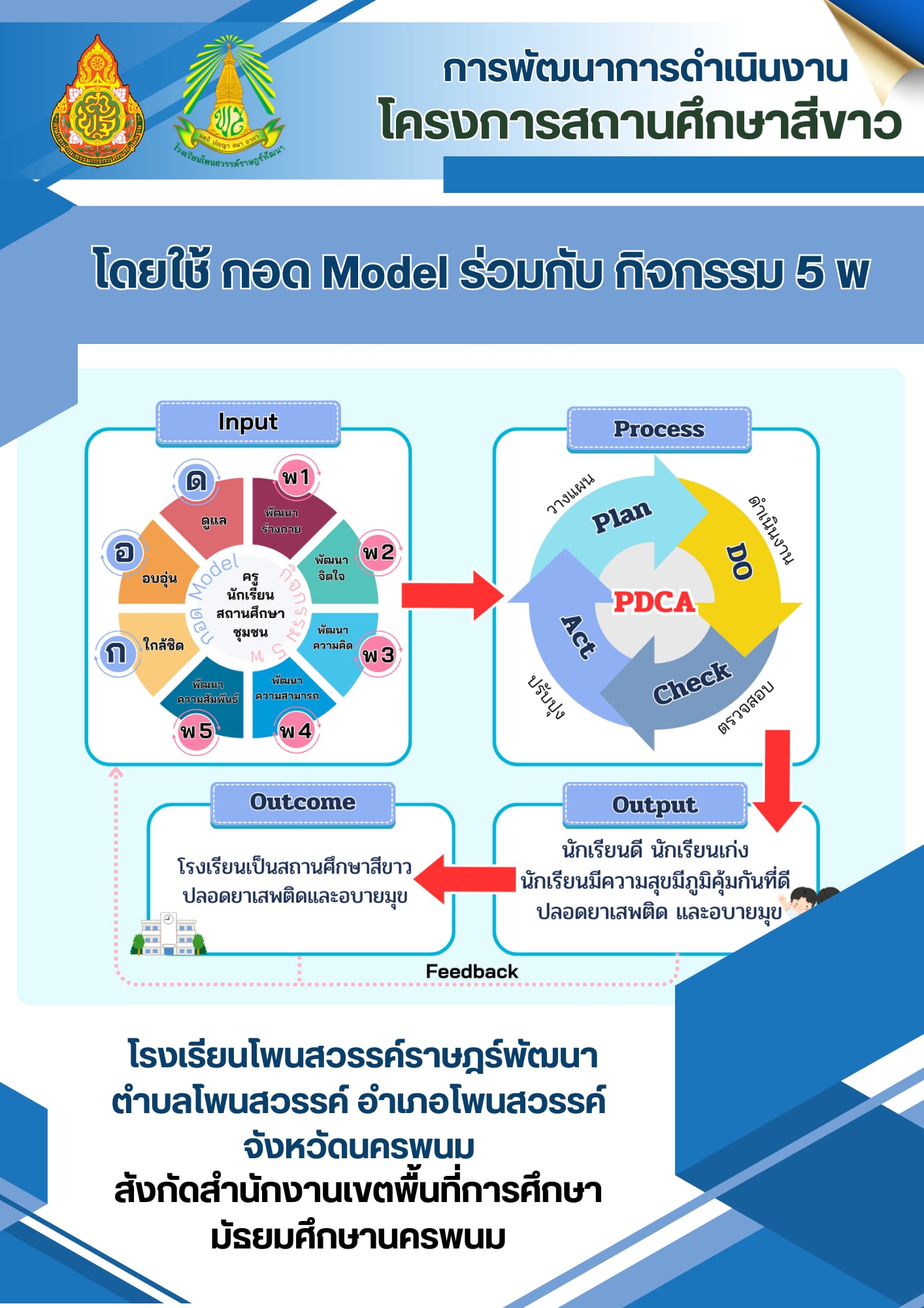 การพัฒนาการดำเนินโครงการสถานศึกษาสีขาวโดยใช้ กอด Model ร่วมกับกิจกรรม 5 พ