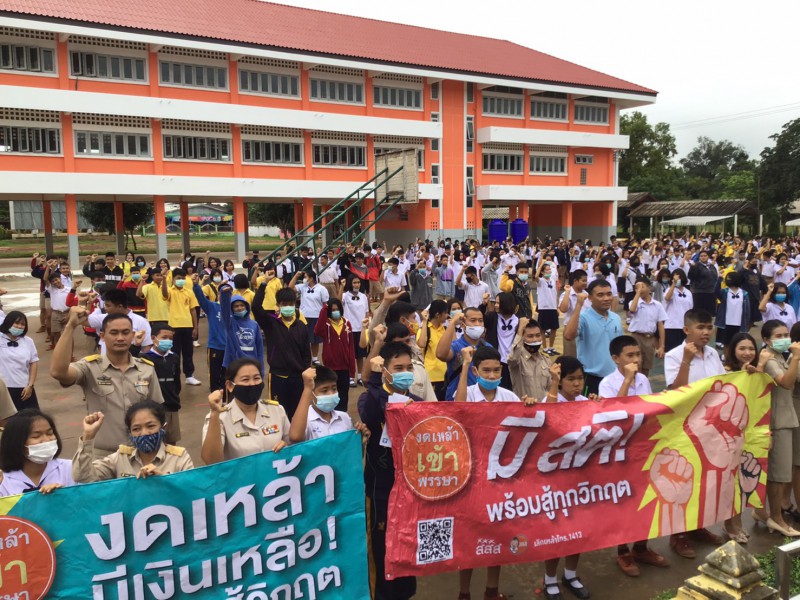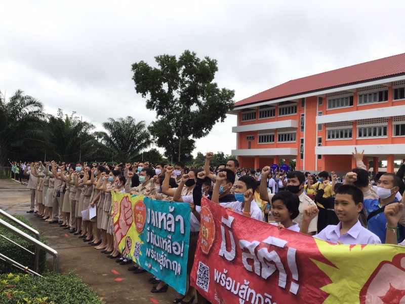 วันจันทร์ที่ 24 สิงหาคม 2563 นายยอดชาย พ่อหลอน ผู้อำนวยการโรงเรียนโพนสวรรค์ราษฎร์พัฒนา ร่วมกับผู้บริหาร คณะครู นักเรียนร่วมกันกล่าวคำปฎิญญา"โรงเรียนสุจริต" แสดงพลังการต่อต้านการทุจริตทุกรูปแบบ และจัดกิจกรรมรณรงค์การงดเหล้าเข้าพรรษา พร้อมเพรียงกัน ณ ลานบริเวณหน้าเสาธง |