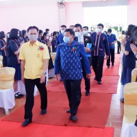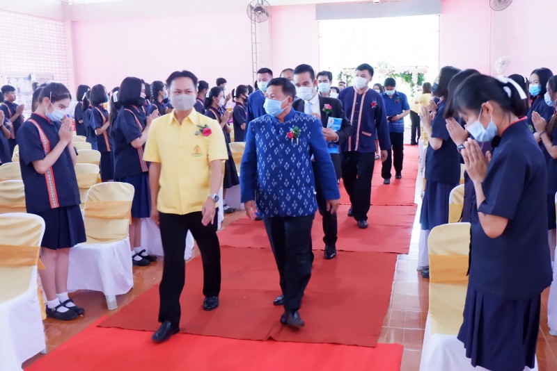 คณะผู้บริหารสถานศึกษาจากโรงเรียนในอำเภอโพนสวรรค์ แขกผู้มีเกียรติและคณะครูรวมไปถึงนักเรียนร่วมต้อนรับคณะกรรมการการประเมินติดตามสถานศึกษา ประจำปี ๒๕๖๓ เพื่อรับรางวัลระบบดูแลช่วยเหลือนักเรียนดีเด่น ณ หอประชุมโรงเรียนโพนสวรรค์ราษฎร์พัฒน