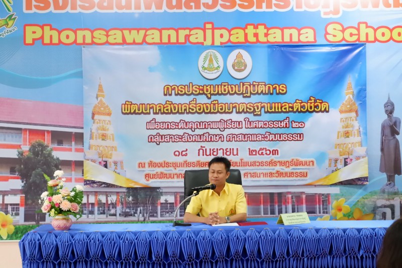 วันที่ 18 กันยายน 2563 นายยอดชาย พ่อหลอน ผู้อำนวยการโรงเรียนโพนสวรรค์ราษฏร์พัฒนา ประธานในพิธีเปิดการประชุมเชิงปฏิบัติการพัฒนาคลังเครื่องมือมาตรฐานและตัวชี้วัด เพื่อยกระดับคุณภาพผู้เรียนในศตวรรษที่ ๒๑ กลุ่มสาระสังคมศึกษา ศาสนาและวัฒนธรรม ณ ศูนย์พัฒนากลุ่มสาระสังคมศึกษาศาสนาและวัฒนธรรม โรงเรียนโพนสวรรค์ราษฎร์พัฒนา