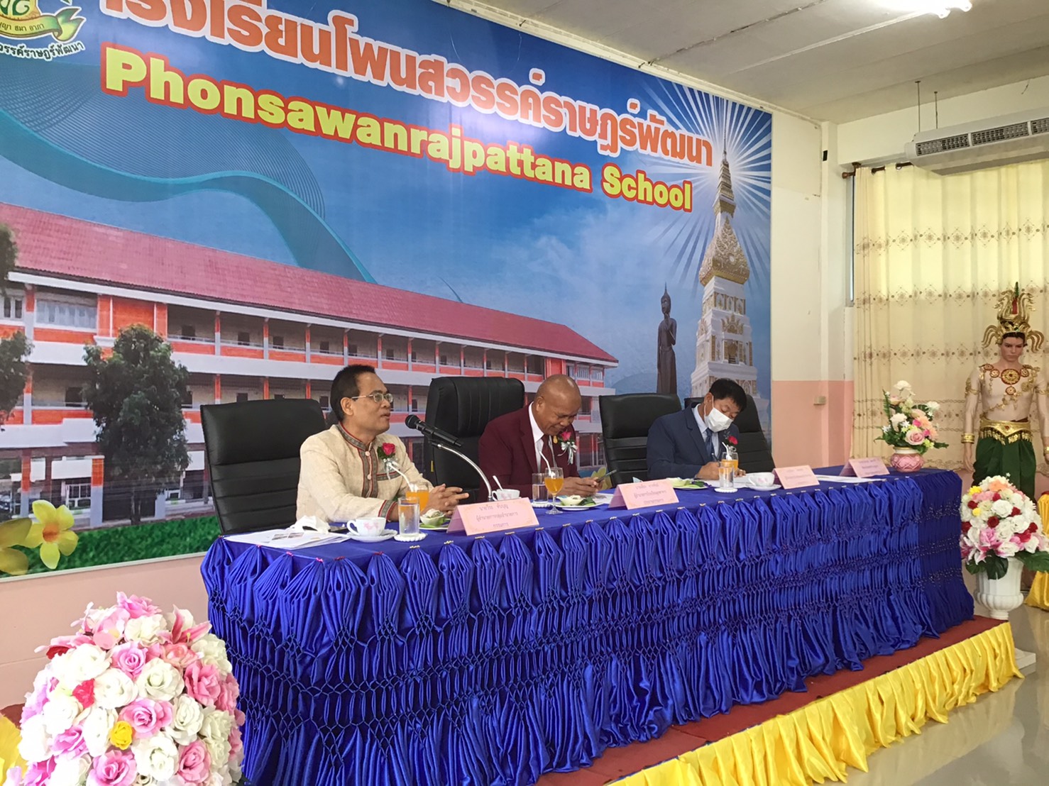 นายศักดิ์ดา สมยา ผู้ช่วยผู้อำนวยการโรงเรียนโพนสวรรค์ราษฎร์พัฒนา พร้อมด้วยคณะครูและนักเรียน ได้ต้อนรับ นายเลียง ผางพันธ์ ผู้อำนวยการโรงเรียนมุกดาหาร จังหวัดมุกดาหารประธาน และคณะกรรมการตรวจสอบและกลั่นกรองข้อมูลประกอบการพิจารณาการประเมินการปฏิบัติงานของข้าราชการครูและบุคลากรทางการศึกษา ตำแหน่งผู้อำนวยการสถานศึกษาครั้งที่ 2 (รอบการประเมิน 1 เมษายน 2563 -30 กันยายน 2563)