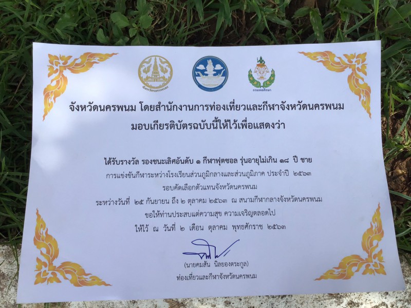ขอแสดงความยินดีกับครูผู้ฝึกสอนและนักกีฬาทีมฟุตซอล รุ่นอายุไม่เกิน ๑๘ ปีชาย ที่สามารถคว้ารางวัลรองชนะเลิศอันดับ ๑ การแข่งขันกีฬาระหว่างโรงเรียนส่วนภูมิกลางและภูมิภาค ประจำปี ๒๕๖๓