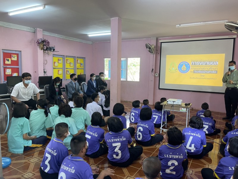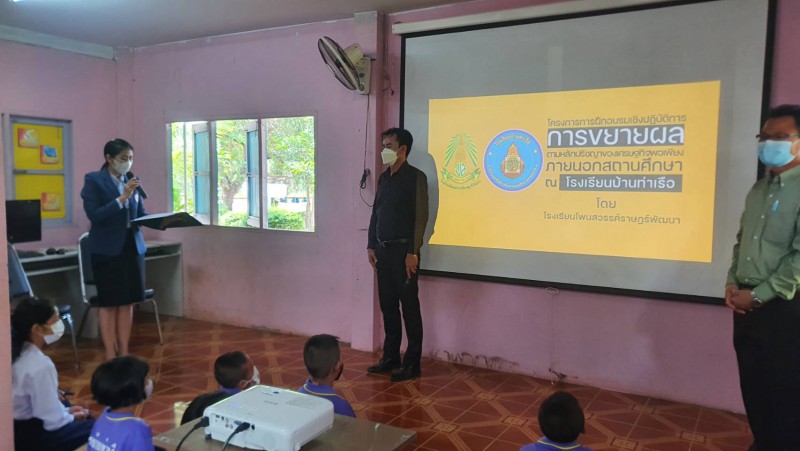 วันพฤหัสบดีที่ 26 พฤษภาคม 2565 นางนิพาภรณ์ คะลีล้วน รองผู้อำนวยการโรงเรียน ได้นำคณะครูวิทยากรแกนนำและนักเรียนแกนนำหลักปรัชญาของเศรษฐกิจพอเพียงโรงเรียนโพนสวรรค์ราษฎร์พัฒนา ขยายผลตามหลักปรัชญาของเศรษฐกิจพอเพียงสู่สถานศึกษาภายนอก ณ โรงเรียนบ้านท่าเรือ