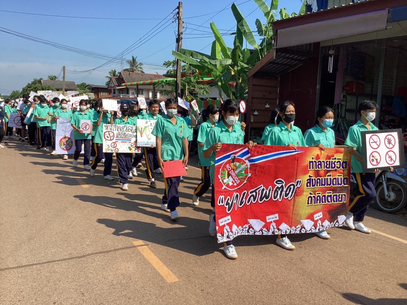 คณะครูและนักเรียนโรงเรียนโพนสวรรค์ราษฎร์พัฒนา ได้เข้ารวมกิจกรรมเดินรณรงค์ต่อต้านยาเสพติด