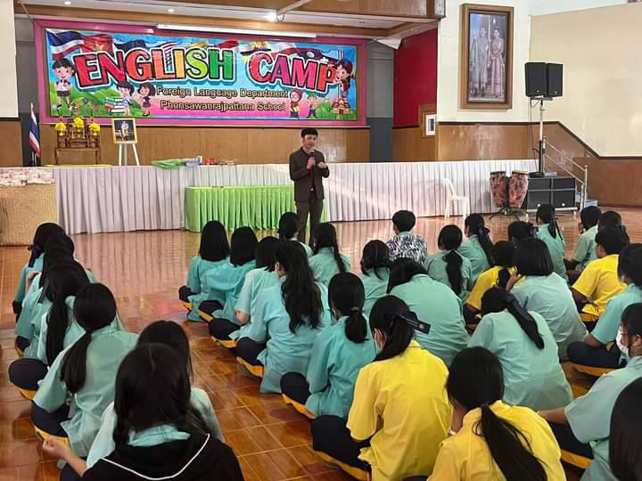 วันเสาร์ที่ 5 พฤศจิกายน 2565 นายยอดชาย พ่อหล่อน ผู้อำนวยการโรงเรียนโพนสวรรค์ราษฎร์พัฒนา ได้มอบหมายให้นายสฤษดิ์ ศรีวันพิมพ์ รองผู้อำนวยการโรงเรียนเป็นประธานในพิธีเปิด กิจกรรมค่ายภาษาอังกฤษ English Day Camp ประจำปีการศึกษา 2565 เพื่อพัฒนาการทักษะการใช้ภาษาอังกฤษและสร้างประสบการณ์ด้านการสื่อสารแก่นักเรียน มีการปฏิบัติกิจกรรมกลุ่ม การเล่นเกม การลงมือปฏิบัติเพื่อให้เกิดทักษะการฟัง การพูด การอ่านและการเขียน โดยมีนักเรียนเข้าร่วมกิจกรรมครั้งนี้จำนวน 100 คน วิทยากรชาวต่างประเทศ จำนวน 5 คน ณ หอประชุมราชพฤกษ์ โรงเรียนโพนสวรรค์ราษฎร์พัฒนา |