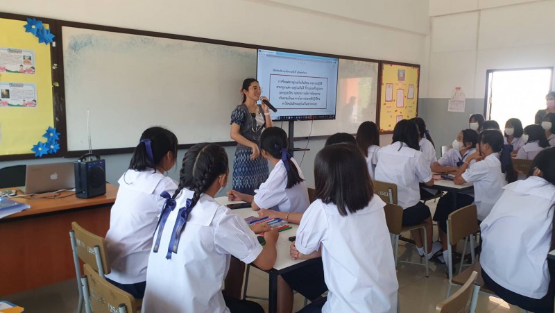 วันศุกร์ที่ ๑๗ มีนาคม ๒๕๖๖ นายเทอดไทย หอมสมบัติ ผู้อำนวยการโรงเรียนโพนสวรรค์ราษฎร์พัฒนา พร้อมด้วยผู้บริหารคณะครูและบุคลากรทางการศึกษาพร้อมนักเรียนให้การต้อนรับ คณะผู้ทรงคุณวุฒิและคณะกรรมการกำกับติดตามร่วมสะท้อนผลการจัดการเรียนรู้และปรับปรุงกิจกรรมการ เรียนรู้ ประกอบไปด้วย รศ.ดร.มนตรี แย้มกสิกร ที่ปรึกษาของสำนักงานเลขาธิการคุรุสภา ด้านการพัฒนาวิชาชีพ ผศ.ดร.พลรพี ทุมาพันธ์ รองเลขาครุสภา นางสาววิภา ลัคนาพรวิสิฐ ผู้อำนวยการสำนักพัฒนาและส่งเสริมวิชาชีพ ดร.ไพฑูรย์ พวงยอด รองคณบดีฝ่ายบัณฑิตศึกษาฯ คณะครุศาสตร์ มหาวิทยาลัยนครพนม และคณาจารย์จากมหาวิทยาลัยนครพม และคณะศึกษานิเทศก์จากสำนักงานเขตพื้นที่การศึกษามัธยมศึกษานครพนมได้มากำกับติดตามร่วมสะท้อนผลการจัดการเรียนรู้และปรับปรุงกิจกรรมการเรียนรู้ กิจกรรมเปิดชั้นเรียนการปฏิบัติการจัดการเรียนรู้ ตามโครงหลักสูตรการพัฒนาครูและบุคลากรทางการศึกษา (Non Degree) การพัฒนาสมรรถนะในการประยุกต์ใช้เทคโนโลยีดิจิทัลเพื่อการจัดการเรียนรู้ในยุคสถานการณ์โควิด- 19 โดยมีคุณครูนวรัตน์ ชาลี ครูโรงเรียนโพนสวรรค์ราษฎร์พัฒนาเป็นผู้จัดกิจกรรมเปิดชั้นเรียนการปฏิบัติการ