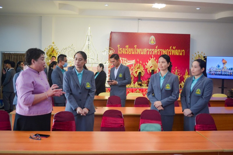 วันพุธที่ 29 มีนาคม 2566 โรงเรียนโพนสวรรค์ราษฎร์พัฒนา นำโดยนายเทอดไทย หอมสมบัติ ผู้อำนวยการโรงเรียนโพนสวรรค์ราษฎร์พัฒนา พร้อมด้วยผู้บริหาร คณะครูและบุคลากรทางการศึกษา นักเรียน ใ้ห้การต้อนรับคณะกรรมการประเมินผลการปฏิบัติงานตามข้อตกลงในการพัฒนางาน(PA) ตำแหน่งผู้อำนวยการสถานศึกษาประจำปีงบประมาณ 2566 และติดตามการพัฒนาการศึกษาตามนโยบาย"โรงเรียนคุณภาพ 3 วิ วิถีชีวิต วิชาการ วิชาชีพ สู่ปัญญานฤมิต ชีวิตมีสุข ตามรอยนวัตวิถี" โดยมีนายภคิน ลดาดกจิรานนท์ รองผู้อำนวยการสำนักงานเขตพื้นทีการศึกษามัธยมศึกษานครพนม มาเป็นประธานในการประเมินครั้งนี้ ณ ห้องเกีตรติยศ โรงเรียนโพนสวรรค์ราษฎร์พัฒนา การประเมินครั้งนี้ ทางคณะผู้บริหาร คณะครูและบุคลากรทางการศึกษาโรงเรียนโพนสวรรค์ราษฎร์พัฒนา ขอขอบคุณคณะกรรมการทุกท่าน ที่ให้คำแนะนำ ชี้แนะ เพื่อเป็นแนวทางในการปรับปรุง แก้ไข พัฒนาให้ดีขึ้น
