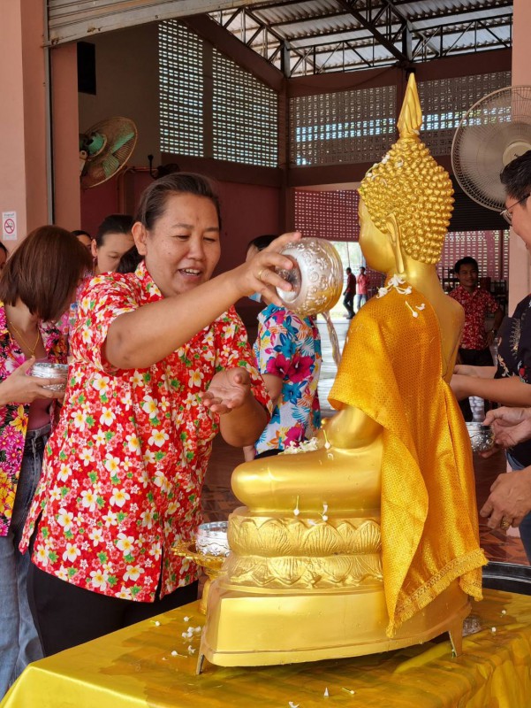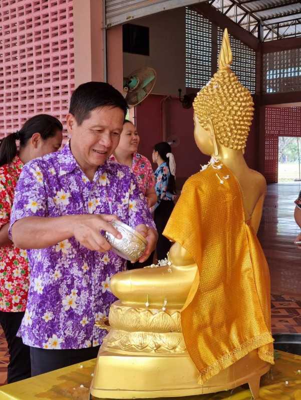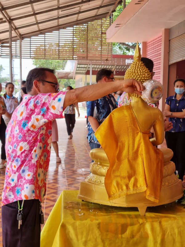 กิจกรรมสรงน้ำพระพุทธรูปและรดน้ำดำหัวผู้ใหญ่เพื่อความเป็นศิริมงคลของคณะผู้บริหาร คณะครูและบุคลากรทางการศึกษาเนื่องในวันสงกรานต๋หรือปีใหม่ไทย