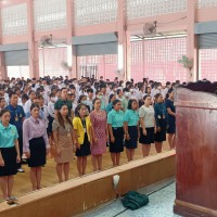 วันอังคารที่ 27 กันยายน 2566 งานกิจการนักเรียน โรงเรียนโพนสวรรค์ราษฎร์พัฒนา นำโดยนายเทอดไทย หอมสมบัติ ผู้อำนวยการโรงเรียน มอบหมายให้นายราชันย์ ไชยมหา รองผู้อำนวยการโรงเรียน เป็นประธานในกิจกรรมอ่านสารสันติภาพและสงบนิ่งจิตอธิษฐาน 1 นาที พร้อมกับคณะครูผู้บริหาร บุคลากรทางการศึกษาและนักเรียน เนื่องในวันสันติภาพสากล 2566 ณ หอประชุมราชพฤกษ์ โรงเรียนโพนสวรรค์ราษฎร์พัฒนา |