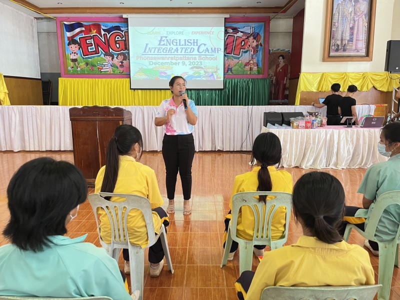 วันเสาร์ที่ 9 ธันวาคม 2566 โรงเรียนโพนสวรรค์ราษฎร์พัฒนา นำโดย นายเทอดไทย หอมสมบัติ ผู้อำนวยการโรงเรียน มอบหมายให้นายราชันย์ ไชยมหา เป็นประธานในพิธีกิจกรรมค่ายบูรณาการภาษาอังกฤษนักเรียน (Enlish Integrated Camp) ดำเนินการโดยกลุ่มสาระการเรียนรู้ภาษาต่างประเทศ เพื่อเป็นการเสริมความรู้และทักษะการเรียนรู้ให้กับนักเรียน ณ หอประชุมราชพฤกษ์ โรงเรียนโพนสวรรค์ราษฎร์พัฒนา |