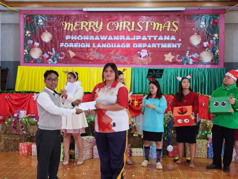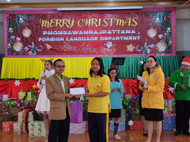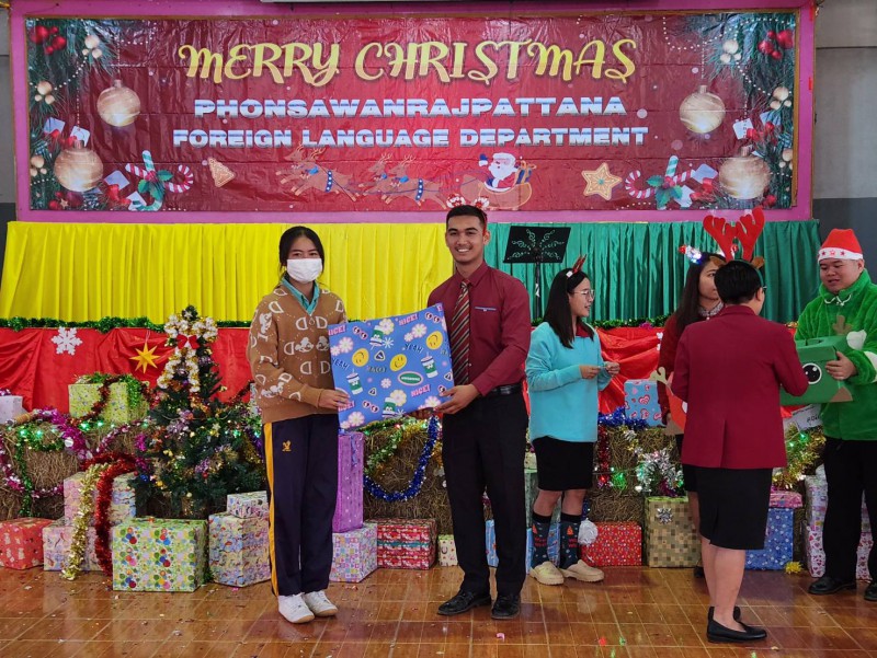 วันจันทร์ ที่ 25 ธันวาคม 2566 โรงเรียนโพนสวรรค์ราษฎร์พัฒนา นำโดย นายเทอดไทย หอมสมบัติ ผู้อำนวยการโรงเรียน มอบหมายให้นายราชันย์ ไชยมหา เป็นประธานในพิธี เปิดและปิดกิจกรรมวันคริสต์มาส ดำเนินการโดยกลุ่มสาระการเรียนรู้ภาษาต่างประเทศ เพื่อเป็นการเสริมความรู้และทักษะการเรียนรู้ให้กับนักเรียน ณ หอประชุมราชพฤกษ์ โรงเรียนโพนสวรรค์ราษฎร์พัฒนา