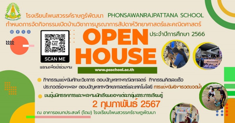 วันศุกร์ที่ 2 กุมภาพันธ์ 2567 กิจกรรมเปิดบ้านวิชาการ(Open House) บูรณาการสัปดาห์วันวิทยาศาสตร์และคณิตศาสตร์ ประจำปีการศึกษา 2566 โดยการนำของ นายเทอดไทย หอมสมบัติ ผู้อำนวยการโรงเรียนโพนสวรรค์ราษฏร์พัฒนา และ นายราชันย์ ไชยมหา นางสาวพิตตินันฏ์กร พ่อครวงค์ รองผู้อำนวยการโรงเรียนโพนสวรรค์ราษฏร์พัฒนา พร้อมคณะครู บุคลากรทางการศึกษา และนักเรียนโรงเรียน โดยรับเกียรตจากนายนิพพิชฌน์ อติอนวรรตน์ นายอำเภอโพนสวรรค์ มาเป็นประธานในพิธีเปิดงานครั้งนี้ ภายในงาน มีกิจกรรมการแข่งขันทักษะวิชาการ ตอบปัญหาทางคณิตศาสตร์ ตอบปัญหาทางวิทยาศาสตร์และเทคโนโลยี การแข่งขันจรวดขวดน้ำ การประกวดร้องเพลง และชุมนิทรรศการและผลงานนักเรียนของแต่ละกลุ่มสาระการเรียนรู้ ณ อาคารอเนกประสงค์(โดม) หลวงตาบุญชื่น ปัญญาวุฒิโฒ