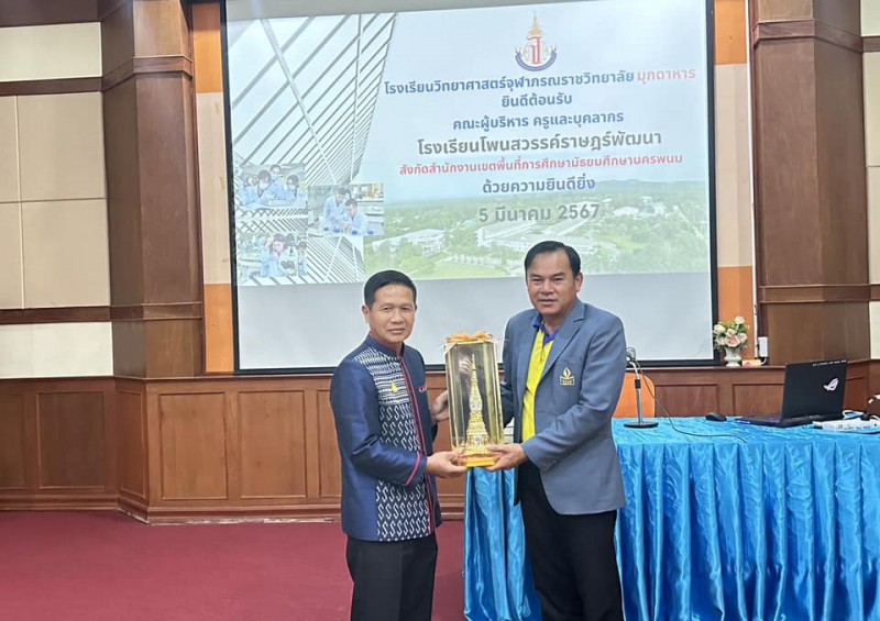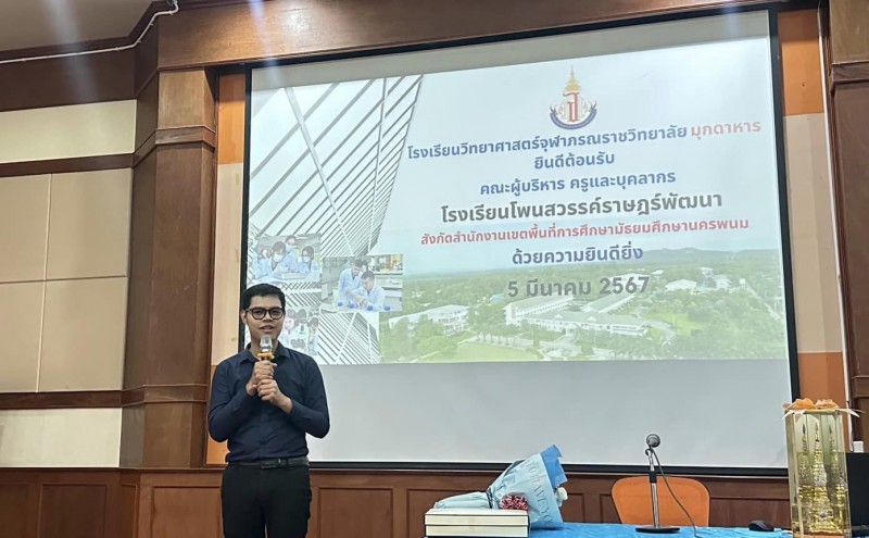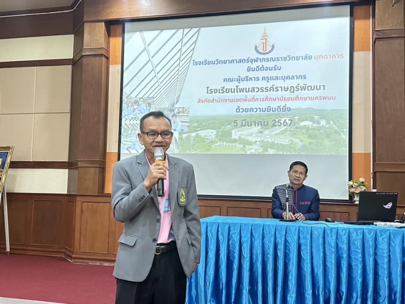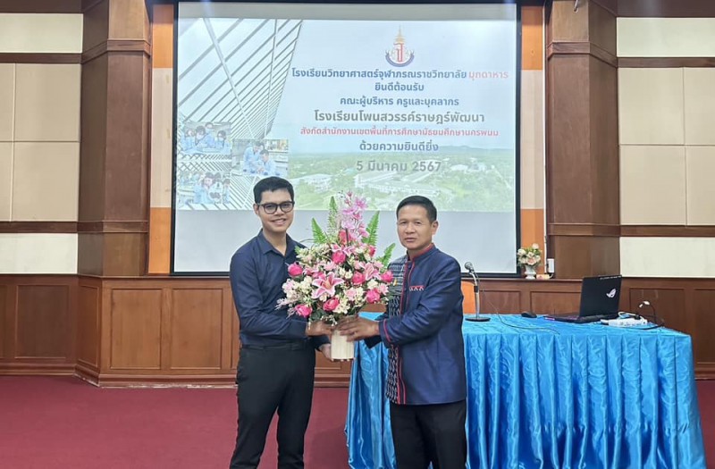 โดยการนำของ นายเทอดไทย หอมสมบัติ ผู้อำนวยการโรงเรียนโพนสวรรค์ราษฏร์พัฒนา และ นายราชันย์ ไชยมหา นางสาวพิตตินันฏ์กร พ่อครวงค์ รองผู้อำนวยการโรงเรียนโพนสวรรค์ราษฏร์พัฒนา พร้อม คณะครูและบุคลากรทางการศึกษาโรงเรียนโพนสวรรค์ราษฎร์พัฒนา มาร่วมแสดงความยินดีให้กับ ครูวิระพงษ์ คันธะมาลา เนื่องในโอกาสย้ายมาปฏิบัติหน้าที่การสอน ณ โรงเรียนวิทยาศาสตร์จุฬาภรณราชวิทยาลัยมุกดาหาร โดยได้รับการต้อนรับจากคณะผู้บริหาร และครู เป็นอย่างดี พร้อมกันนี้ได้นำคณะครูของโรงเรียนโพนสวรรค์ราษฎร์พัฒนา เข้าพาเยี่ยมชมห้องปฏิบัติต่างๆ ในกลุ่มสาระวิทยาศาสตร์และเทคโนโลยี ทางโรงเรียนต้องขอขอบคุณ