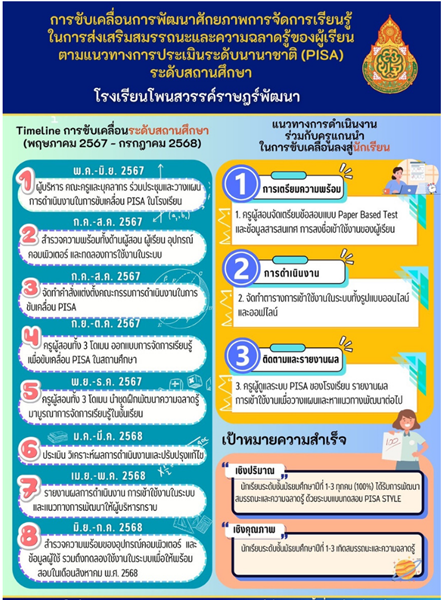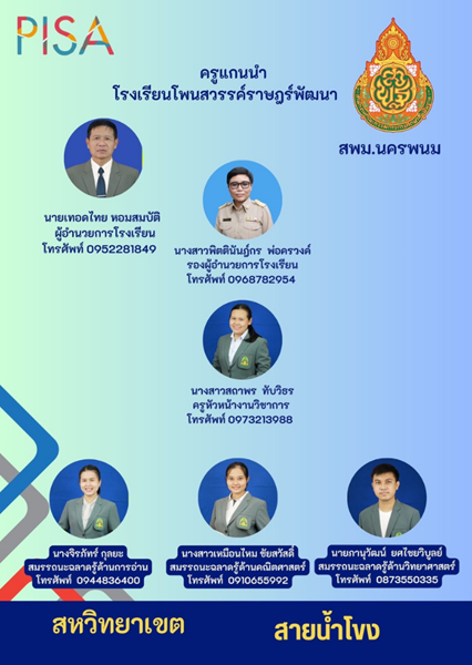 นายเทอดไทย หอมสมบัติ ผู้อำนวยการโรงเรียนโพนสวรรค์ราษฎร์พัฒนา พร้อมด้วยรองผู้อำนวยการ ดำเนินการประชุมกับคณะครูแกนนำ หัวหน้ากลุ่มบริหารวิชาการ หัวหน้ากลุ่มสาระการเรียนรู้ และบุคลากรทางการศึกษา เพื่อสร้างความเข้าใจในการพัฒนาสมรรถนะความฉลาดรู้ของนักเรียน PISA และนำไปขยายผลให้กับคณะครูในโรงเรียน เพื่อบูรณาการเข้าถึงรายวิชาต่างๆ ในชั้นเรียน อันส่งผลให้เกิดความรู้ความเข้าใจในการพัฒนาสมรรถนะการฉลาดรู้ของผู้เรียนผ่านระบบ PISA STYLE ONLINE TESTING ณ ห้องประชุมเกียรติยศ โรงเรียนโพนสวรรค์ราษฎร์พัฒนา |