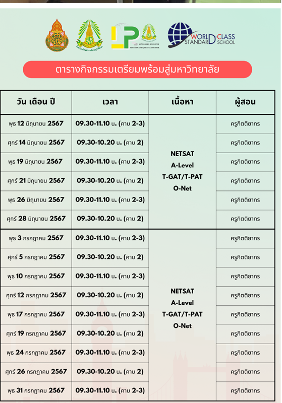 กิจกรรมเตรียมความพร้อมสู่มหาวิทยาลัย ห้องเรียนพิเศษภาษาต่างประเทศ(LP)