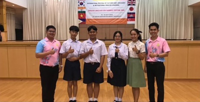 ห้องเรียนพิเศษภาษาต่างประเทศ Languages Program โรงเรียนโพนสวรรค์ราษฎร์พัฒนา โดยการนำของนายเทอดไทย หอมสมบัติ ผู้อำนวยการโรงเรียน มอบหมายให้คณะครูห้องเรียนพิเศาภาษาต่างประเทศนำนักเรียนเข้าร่วม กิจกรรมการประกวดแข่งขันทักษะภาษาอังกฤษ Englist Language Edutainment Festival 2024 โดยนำนักเรียนเข้าร่วม 7 คน 3 รายการ ได้แก่ การแข่งขั้นกล่าวสุนทรพจน์ภาษาอังกฤษ(Englist Speech Competition) การแข่งขันตอบคำถามภาษาอังกฤษ(Englist Quiz Compettion) และการแข่งขันต่อคำศัพท์ภาษาอังกฤษๅ (Crossword Competition) และร่วมกิจกรรมภาษาและวัฒนธรรมนานาชาติ ณ มหาวิทยาลัยราชภัฏสกลนคร |