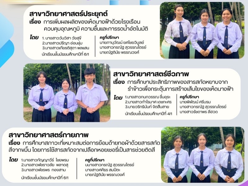 โรงเรียนโพนสวรรค์ราษฎร์พัฒนาผ่านการคัดเลือกและมีสิทธิ์เข้าแข่งขันการประกวดโครงงานวิทยาศาสตร์ ระดับชั้นมัธยมศึกษาตอนปลาย รอบชิงชนะเลิศ ในงานสัปดาห์วิทยาศาสตร์แห่งชาติส่วนภูมิภาค ประจำปี พ.ศ. 2567 คณะวิทยาศาสตร์ มหาวิทยาลัยขอนแก่น รายการที่ชิงชนะเลิศ คือ 1. สาขาวิทยาศาสตร์ประยุกต์ เรื่องการเพิ่มผลผลิตของเห็ดนางฟ้าด้วยโรงเรือน ควบคุมอุณหภูมิ ความชื้นและการรดน้ำอัตโนมัติ 2. สาขาวิทยาศาสตร์ชีวภาพ เรื่องการศึกษาประสิทธิภาพของสารสกัดหยาบจากรำข้าวเพื่อกระตุ้นการสร้างเส้นใยของเห็ดนางฟ้า 3. สาขาวิทยาศาสตร์กายภาพ เรื่องการศึกษาสภาวะที่เหมาะสมต่อการย้อมด้วยทอดผ้าด้วยสารสกัดสี่จากขมิ้น โดยการใช้สารสกัดจากเปลือกหอยเชอรี่เป็นสารช่วยติดสี