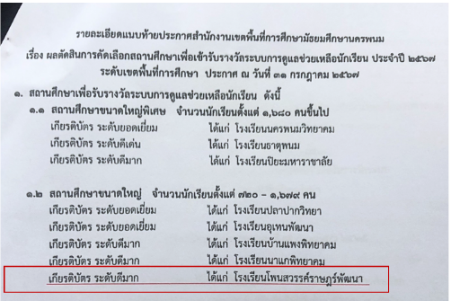 เหลือนักเรียน ประจำปี 2567 ระดับเขตที่การศึกษาษา ผลการคัดเลือก ทำให้โรงเรียนโพนสวรรค์ราษฎร์พัฒนา เป็นสถานศึกษา
