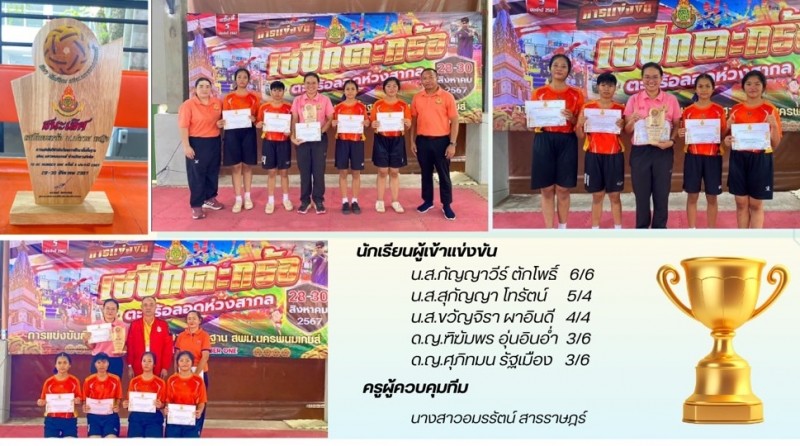 ขอแสดงความยินดีกับนักเรียนและคณะครูกลุ่มสาระการเรียนรู้สุขศึกษาและพลศึกษา ที่ได้รับรางวัลชนะเลิศ การแข่งขันกีฬาเซปักตะกร้อ ระดับชั้น ม.ปลายหญิง การแข่งขันกีฬานักเรียนการศึกษาขั้นพื้นฐาน สพม.นครพนมเกมส์ ต้านภัยยาเสพติด TO BE NUMBER ONE ครั้งที่ 5 ประจำปี 2567 ระหว่างวันที่ 28-30 สิงหาคม 2567