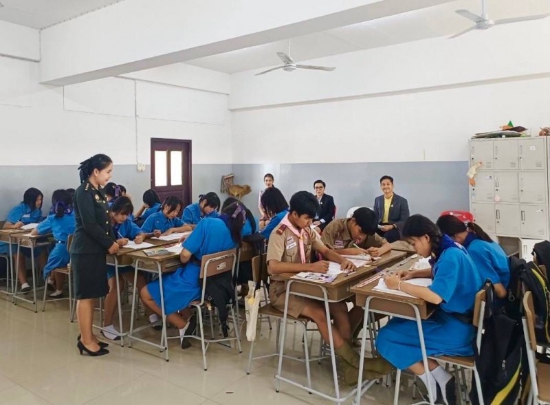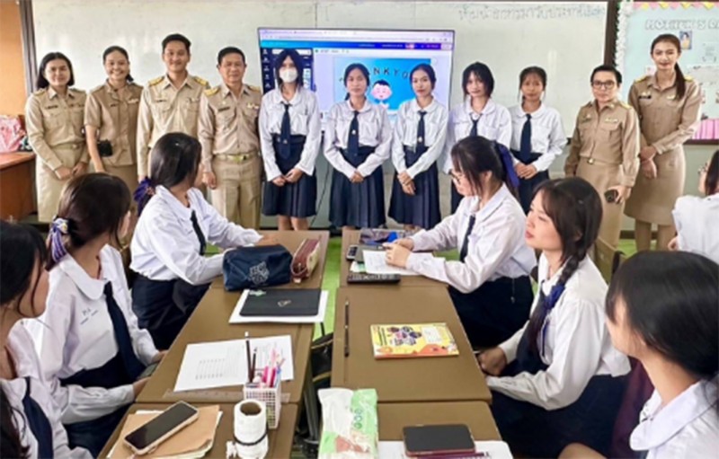 นายเทอดไทย หอมสมบัติ ผู้อำนวยการโรงเรียนโพนสวรรค์ราษฎร์พัฒนานำทีมพร้อมด้วย นางสาวพิตตินันฎร์กร พ่อครวงศ์ นายริปไตย จันทะพล และนางสาวสุพัตรา ภิรมย์ชม รองผู้อำนวยการโรงเรียน และนางจิรภัทร์ กุลยะ หัวหน้ากลุ่มสาระการเรียนรู้ นิเทศการจัดการเรียนการ