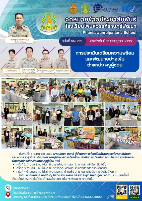 16 กรกฎาคม 2568 นายประชา สมศรี ผู้อำนวยการโรงเรียนโพนสวรรค์ราษฎร์พัฒนา และ นางสาวสุพัตรา ภิรมย์ชม รองผู้อำนวยการโรงเรียน ดำเนินการประเมินการเตรียมความพร้อมและ พัฒนาอย่างเข้ม