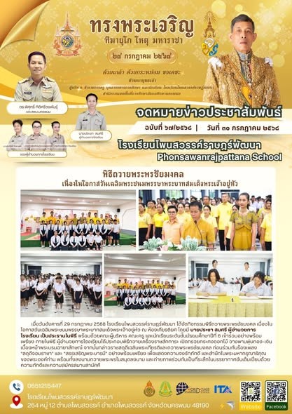 29 กรกฎาคม 2568 จัดกิจกรรมพิธีถวายพระพรชัยมงคล เนื่องในโอกาสวันเฉลิมพระชนมพรรษาพระบาทสมเด็จพระเจ้าอยู่หัว