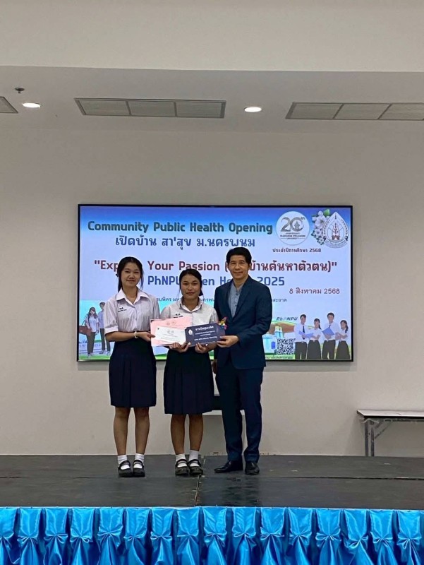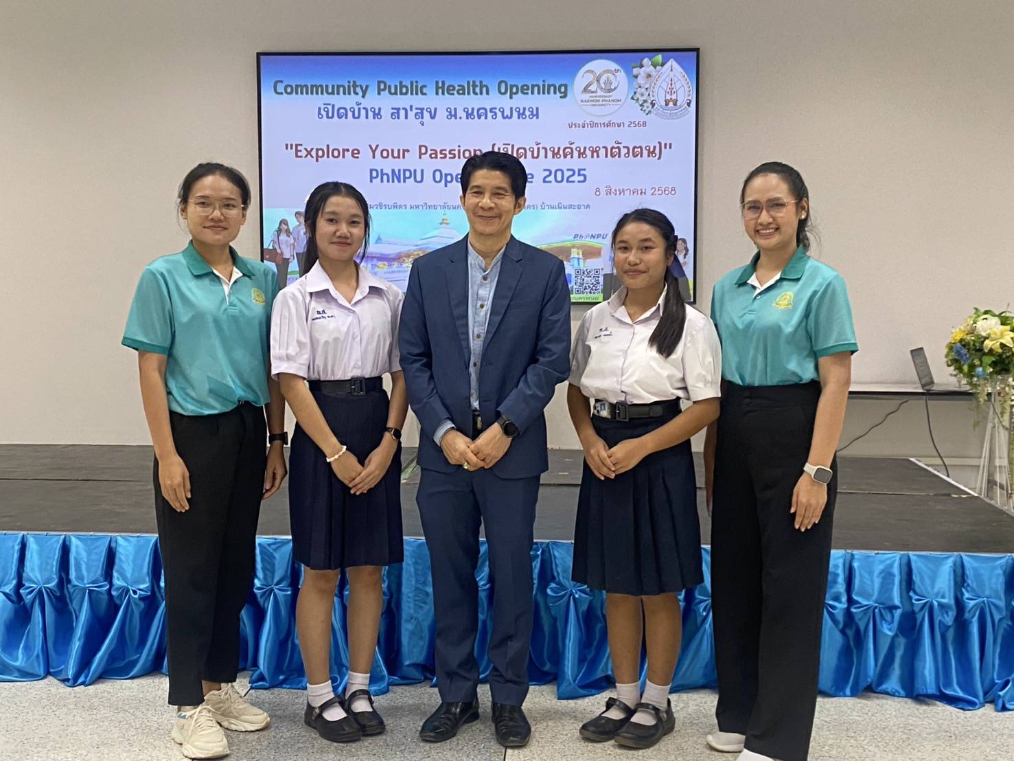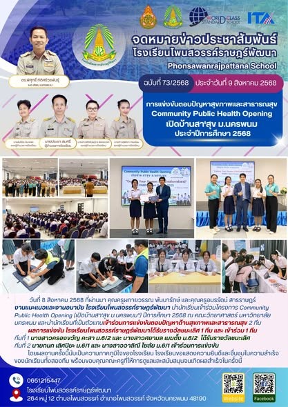 วันที่ 8 สิงหาคม 2568 ที่ผ่านมา คุณครูผกายวรรณ พันนารักษ์ และคุณครูอมรรัตน์ สารราษฎร์ งานแนะแนวและงานอนามัย โรงเรียนโพนสวรรค์ราษฎร์พัฒนา นำนักเรียนเข้าร่วมโครงการ Community Public Health Opening (เปิดบ้านสา'สุข ม.นครพนม") ปีการศึกษา 2568