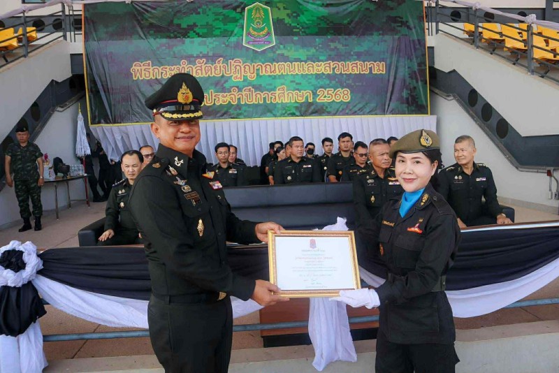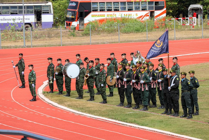 นักศึกษาวิชาทหารโรงเรียนโพนสวรรค์ราษฎร์พัฒนา เข้าร่วมพิธีกระทำสัตย์ปฏิญาณตน และสวนสนามของนักศึกษาวิชาทหาร ประจำปีการศึกษา 2568 ณ สนามกีฬามหาวิทยาลัยนครพนม