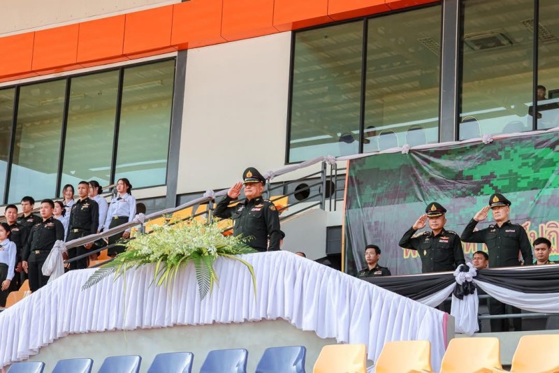 สนามกีฬามหาวิทยาลัยนครพนม (เขตพื้นที่มรุขนคร) ในงาน พิธีกระทำสัตย์ปฏิญาณตนและสวนสนามนักศึกษาวิชาทหาร ประจำปีการศึกษา 2568 โดยหน่วยฝึกนักศึกษาวิชาทหาร มณฑลทหารบกที่ 210