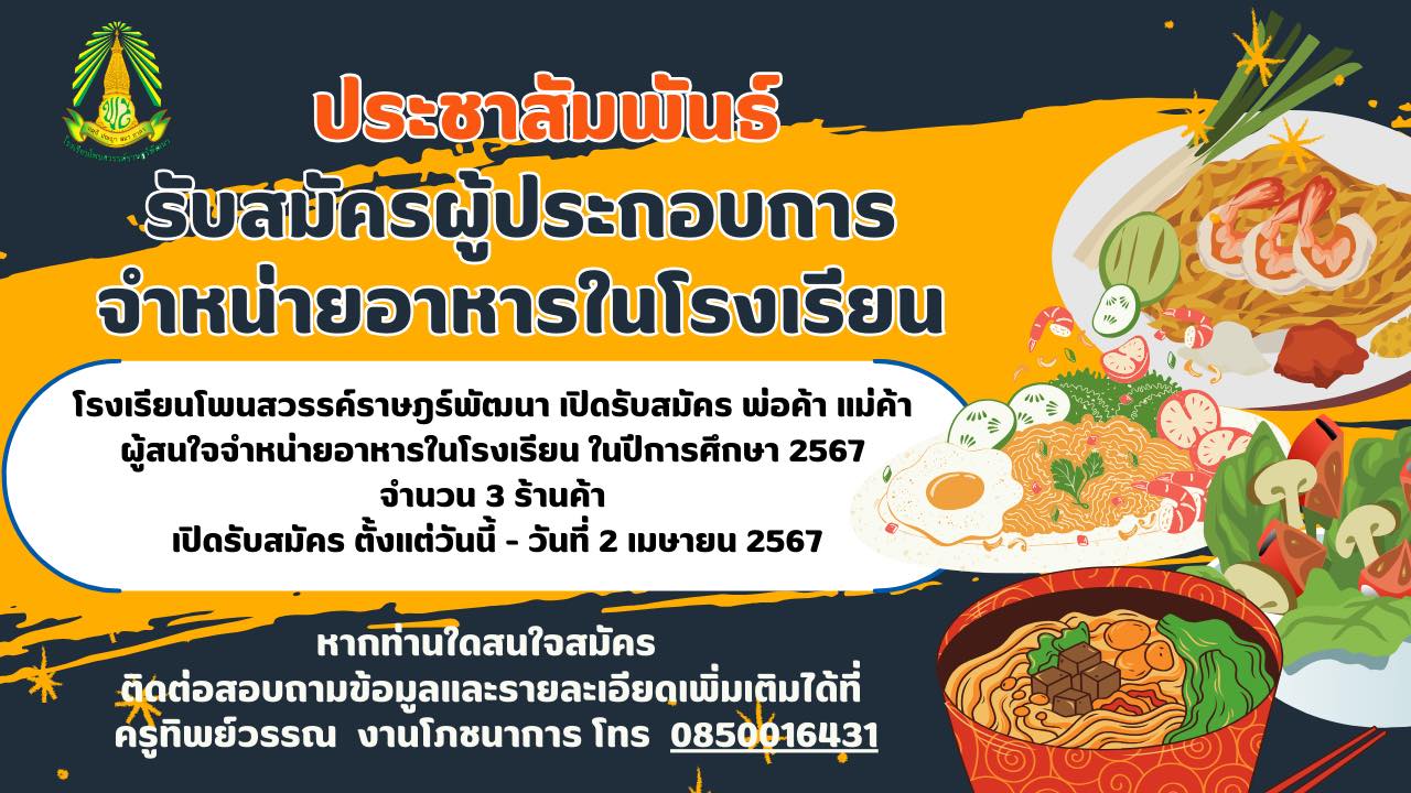 รับสมัครผู้ประกอบการ จำหน่ายอาหารในโรงเรียนโพนสวรรค์ราษฏร์พัฒนา