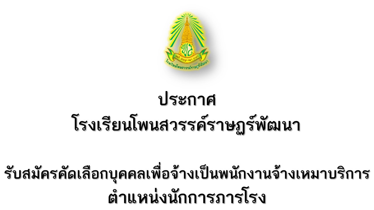 ประกาศโรงเรียนโพนสวรรค์ราษฎร์พัฒนา เรื่อง รับสมัครคัดเลือกบุคคลเพื่อจ้างเป็นพนักงานจ้างเหมาบริการ ตำแหน่งนักการภารโรง