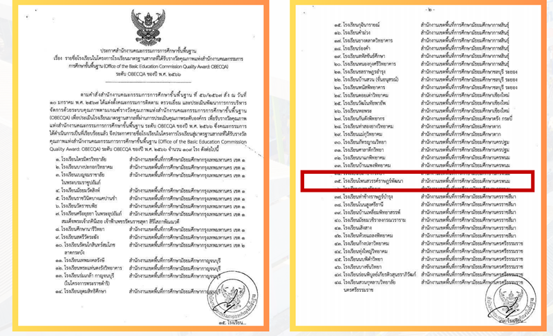 ผ่านการประเมินโครงการโรงเรียนมาตรฐานสากล ได้รับรางวัลคุณภาพจากสำนักงานคณะกรรมการการศึกษาขั้นพื้นฐาน(Office of the Basic Education Commission Quality Awards : OBECQA