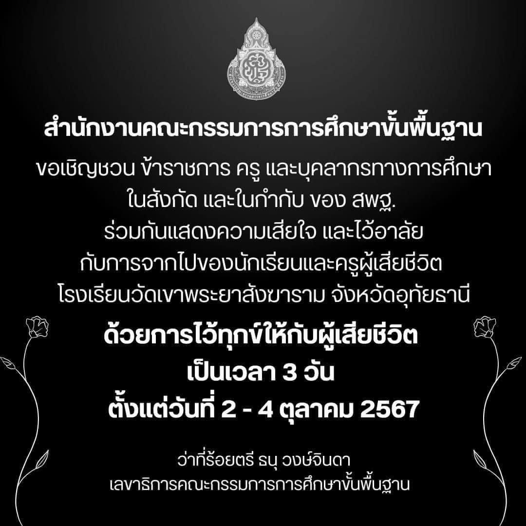 ขอแสดงความเสียใจอย่างสุดซึ้ง กับครอบครัวผู้สูญเสียและบาดเจ็บ ในเหตุการณ์รถบัสทัศนศึกษาเกิดเหตุเพลิงไหม้ โรงเรียนวัดเขาพระยาสังฆาราม อุทัยธานี ด้วยความอาลัยอย่างที่สุด โรงเรียนโพนสวรรค์ราษฎร์พัฒนา สำนักงานเขตพื้นที่การศึกษามัธยมศึกษานครพนม