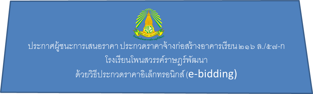 ประกาศผู้ชนะการเสนอราคา ประกวดราคาจ้างก่อสร้างอาคารเรียน ๒๑๖ล./๕๗-ก โรงเรียนโพนสวรรค์ราษฎร์พัฒนา